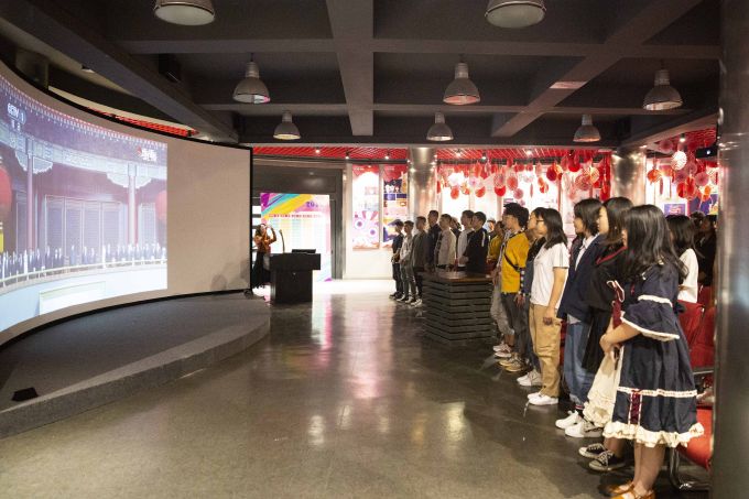 为庆祝祖国70周年华诞,10月1日上午9:40,动漫学院特在三楼多媒体教室举办入党积极分子实践活动:观看庆祝中华人民共和国成立70周年大会;本次活动由辅导员李姝主持,各年级学生共同参加。