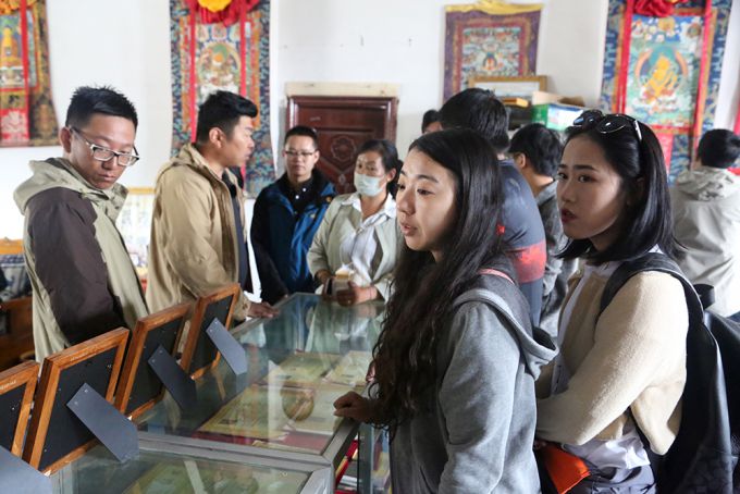 为增进吉藏两地青年文化交流、学习,日喀则市委宣传部于8月10日下午安排师生们参观了日喀则市藏露民族手工业传承发展有限公司、唐卡画院。