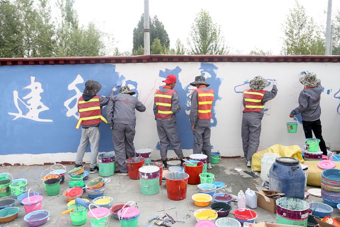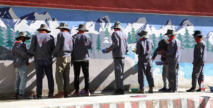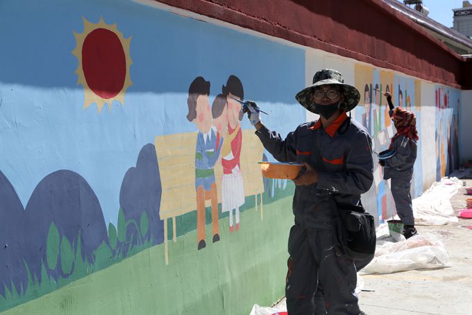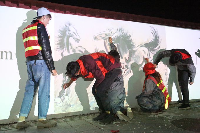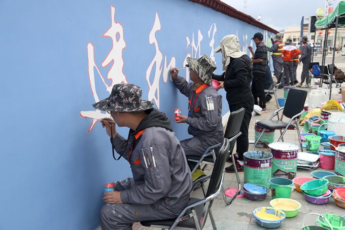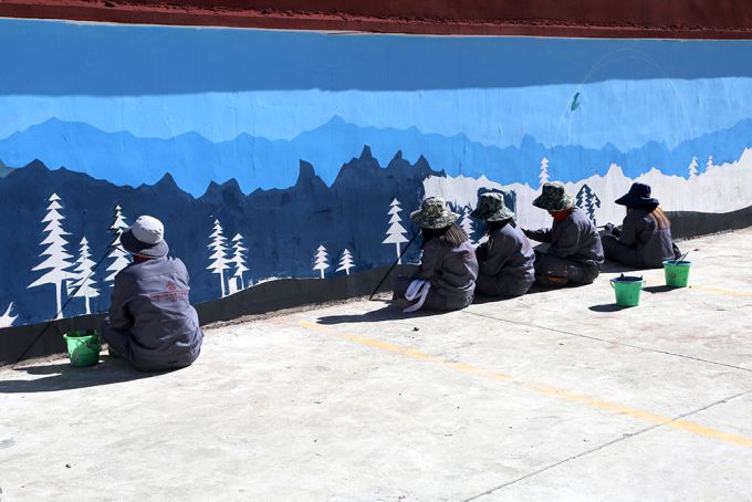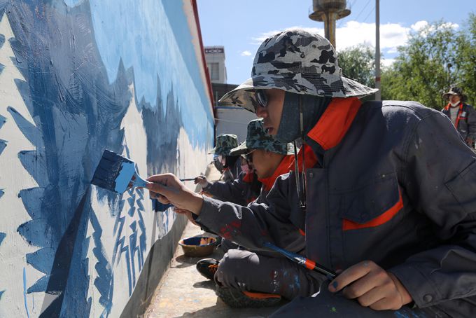 他们与日喀则职业技术学校的15名学生一起,为日喀则市带来了7400平方米的视觉盛宴。