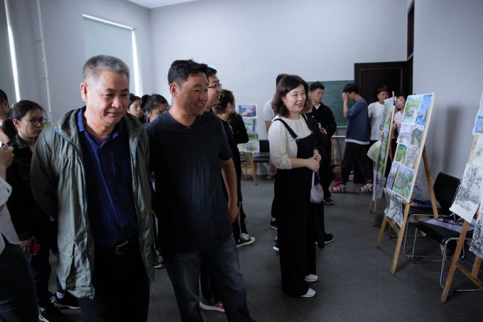 此次展览参展作品均为近期临摹水彩作品及风景写生作品。展览准备阶段,由各班级造型基础负责老师带领18级学生进行作品挑选与展示,并对专业课的学习进行总结与指导。展览期间,全体18级同学以班级为单位依次进行参观与欣赏,各班老师为同学们讲评作品,为专业课学习查漏补缺。党总支书记苏荣凤、动漫学院院长赵庆华、党总支副书记刘颖、动漫学院副院长矫强前往观看,并对展出作品表示鼓励和支持。