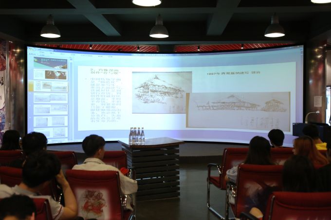 首先,郭冶教授向学生们讲述了如何练好自己的造型基础能力,强调实地采风、观察生活的重要性,并分享自己创作的动漫艺术形象及如何运用夸张手法来充实作品,学习他人优秀作品,培养创新精神等;之后就漫画家如何生存发展展开讲述,明确其发展目标,学会从专业视角解析漫画专业的发展方向;向学生们放映各种风格的外国漫画家作品,并从中解析。