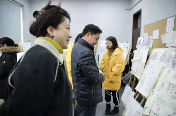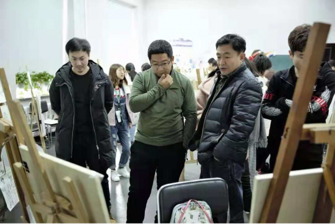 11月30日上午10时,动漫学院于2018级各班级举办结课作品展览会,党组织书记苏荣凤、院长赵庆华、副院长矫强、辅导员李曦、造型基础部教师及18级学生参加。
