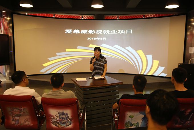 6月11日中午12:00,动漫学院于教学楼三楼多媒体教室开展爱幕威影视就业项目讲座,14、15级全体学生参加。