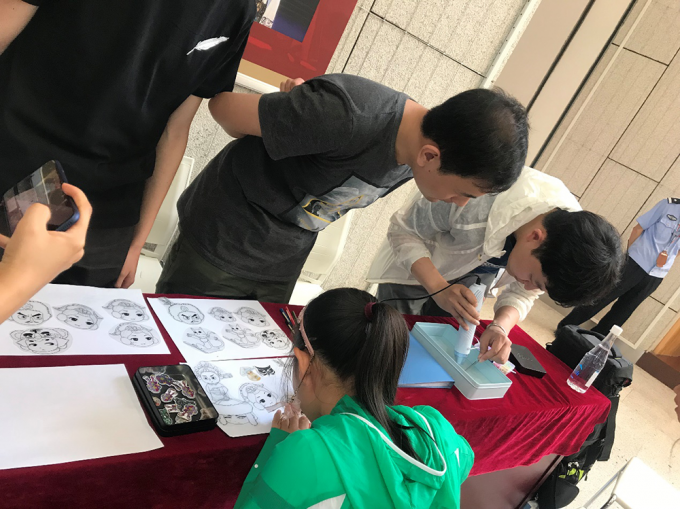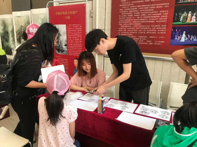 我院卡通漫画系副系主任刘丽老师和动画艺术系副主任贾昆老师带领我院学生参与了这次非遗市民体验活动。在现场通过将吉林省国家级濒危非物质文化遗产项目—黄龙戏中的人物形象与动漫专业相结合,以热缩片的这种手工体验的形式参与这次活动。